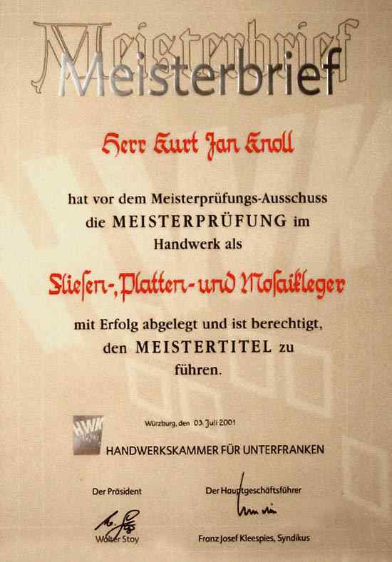 Meisterbrief Fliesen-, Platten und Mosaikleger |