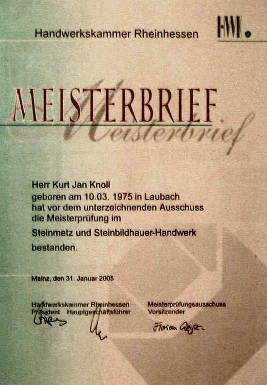 Meisterbrief Steinmetz- und Steinbildhauer |